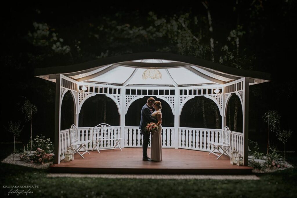 Zielona sceneria, drzewa, ogród, romantyczna huśtawka czy piękna biała altana stwarzają idealne warunki do wykonania zdjęć. Możecie zrealizować swoją sesję ślubną zarówno w dniu przyjazdu, a także w trakcie przyjęcia weselnego. Sesja ślubna może być zaplanowana również na inny dzień niż sama uroczystość. Jeżeli marzą się Państwu pamiątkowe zdjęcia w innym miesiącu niż ślub, serdecznie zapraszamy do ponownych odwiedzin Dworku Tryumf.
