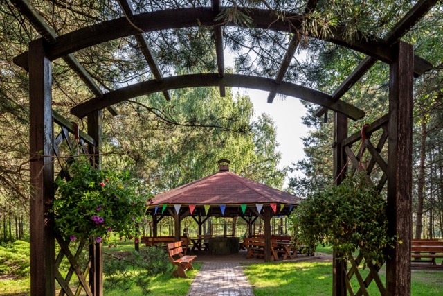 Otoczenie Hotelu Tryumf sprzyja biesiadowaniu na świeżym powietrzu. Miłośników spotkań plenerowych zapraszamy do skorzystania z dwóch wiat grillowych. To idealna przestrzeń do organizacji rodzinnych przyjęć, kameralnych pikników w gronie znajomych czy budujących więzi imprez integracyjnych. Zadaszona konstrukcja z piecem opalanym drewnem oraz stołami i ławami to gwarancja udanej biesiady w regionalnym stylu. Na terenie Dworku znajduje się również pięknie zlokalizowane stanowisko piknikowe. To doskonałe miejsce, aby zorganizować spotkanie na świeżym powietrzu, czerpiąc przy tym z uroków i odgłosów natury. Dla naszych gości dajemy również możliwość organizacji dużego ogniska, przy którym również można zorganizować biesiadny poczęstunek lub dodatkowe atrakcje. Spotkania w plenerze niezmiennie cieszą zarówno dzieci jak i dorosłych.